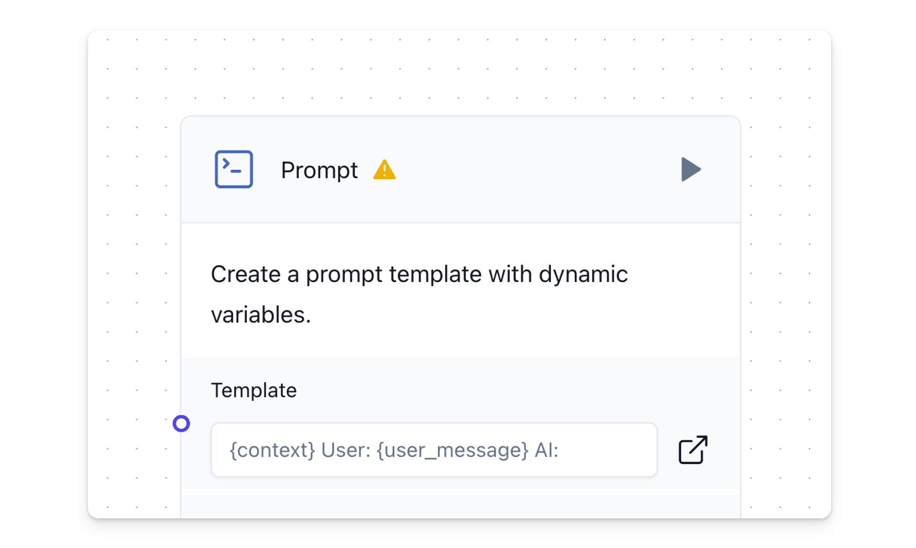 On the top right corner of the component, you'll find the a play button to run a component. Once it runs, a status icon appears and you can hover over that to visualize success or error messages. Start interacting with your AI by clicking the Playground at the bottom right of the workspace.
