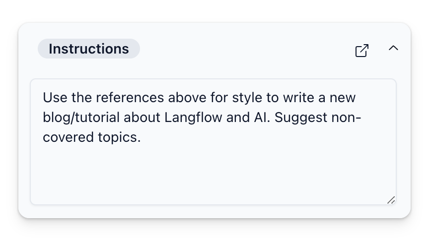 The {instructions} value is received from the Instructions component. One or more {references} are received from a list of URLs.